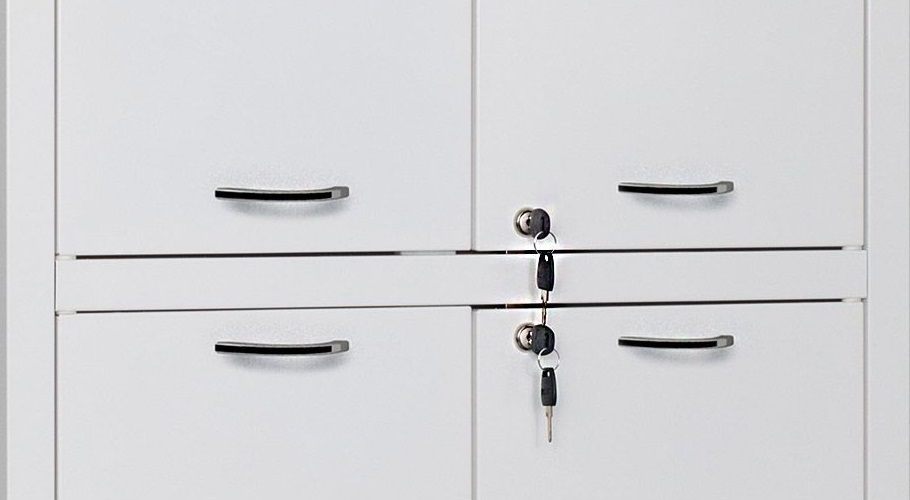 - На металлические двери шкафа устанавливаются ключевые замки HILFE (2000 комбинаций)