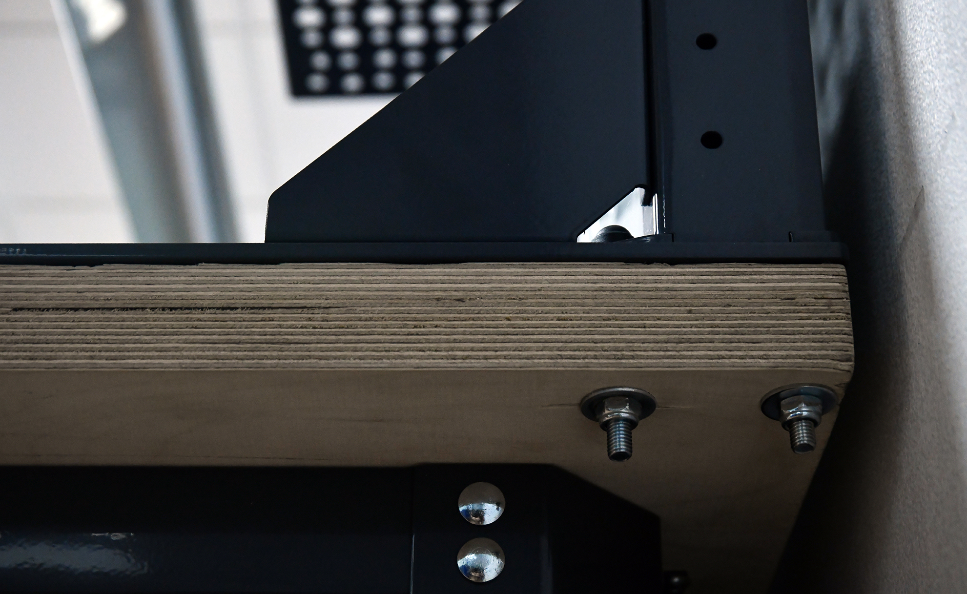 Общая толщина столешницы – 45 мм. Она состоит из 40-миллиметрового слоя влагостойкой фанеры марки ФСФ, покрытого лаком-антисептиком и стальным листом горячекатной стали толщиной 5 мм.
